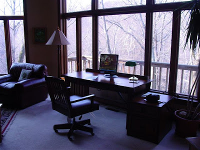 She has a lovely view overlooking the woods. It has a grown-up tree house feel to it.